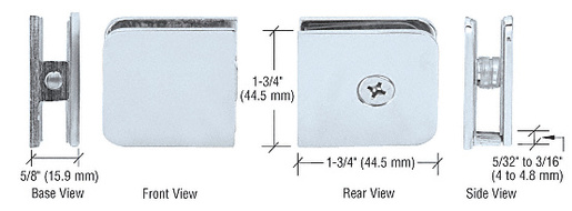 CRL Standard Fixed Panel U-Clamps mount directly to the wall, ceiling or floor to secure vertical fixed glass panels. Clearance between the glass and wall is from 5/32" to 3/16" (4 to 5 mm). Clear silicone can be used to seal the gap and provide a clean, water resistant appearance.