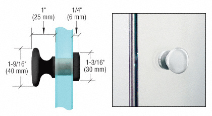 These CRL Solid Brass Knobs are available in many popular finishes. Overall diameter of knob is 1-9/16" (39.7 mm); overall height is 1" (25.4 mm) from glass. End Cap for Single-Sided Knob stands 1/4" (6 mm) from the door surface. Requires a 1/2" (12 mm) hole in glass for installation.