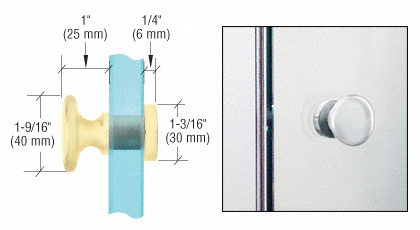 These CRL Solid Brass Knobs are available in many popular finishes. Overall diameter of knob is 1-9/16" (39.7 mm); overall height is 1" (25.4 mm) from glass. End Cap for Single-Sided Knob stands 1/4" (6 mm) from the door surface. Requires a 1/2" (12 mm) hole in glass for installation.