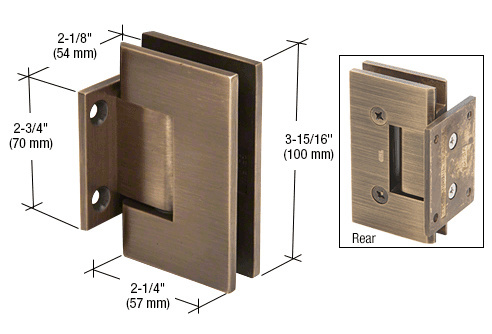 CRL Vienna Hinges are the solution for wider, heavier doors that traditional hinges are not strong enough to support. Two strategically placed steel pins inside the hinge provide template options, and satisfy two schools of thought for mounting shower door hinges. For the safety of "mouse-ears" type cut-outs, the two steel pins should be left in place. This allows the Vienna Hinge to be used with it's own CRL "mouse-ears" cut-out. On the other hand, to enable increased adjustability, the two pins can be removed. This allows the Vienna Hinge to fit it's own CRL rectangular shaped, square cornered cut-out. In some cases, it will also fit competitive rectangular shaped, square cornered cut-outs.