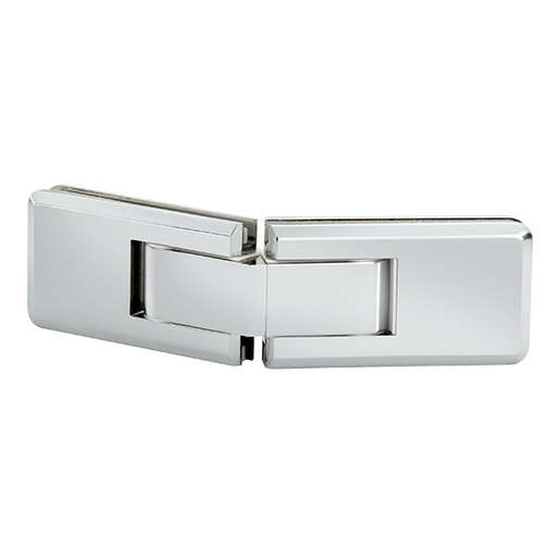 This innovative Crown Series 135 degree Glass-to-Glass 'All-Glass' Door Hinge gives you the best of two worlds; minimal hardware and self-centering action, all wrapped up in a stylish, heavy-duty Hinge. Heavy-duty solid forged brass shower door hinges with rounded corners and beveled edges. Two of these double-acting Hinges will allow you to create 'all-glass' doors or gates weighing up to 140 lbs. (63.5 kg) with a maximum width of 39" (1 m).